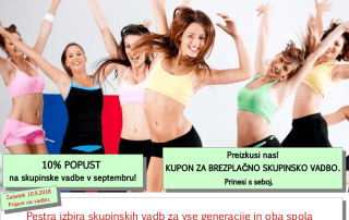 Sezona skupinskih vadb 2018/19 in aktivnosti za otroke se začenja! Informacije in prijave: 040 475 090, info@vogu.si 10% POPUST na skupinske vadbe v septembru! Preizkusi nas! KUPON ZA BREZPLAČNO SKUPINSKO VADBO Prinesi s seboj ZAČETEK 10.9.2018! Pestra izbira skupinskih vadb za vse generacije in oba spola Pilates, Joga, Nirvana (antistres vadba), Dancefit (plesna [...]