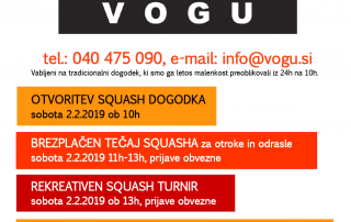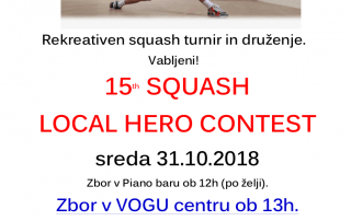 Rekreativen squash turnir in druženje. Vabljeni! 15 th SQUASH LOCAL HERO CONTEST sreda 31.10.2018 Zbor v Piano baru ob 12h (po želji). Zbor v VOGU centru ob 13h. (skupinsko fotografiranje, welcome drink, squash turnir od 13h-18h, druženje in zabava od 18h dalje) Dress code: elegantna oblačila. Prijavnina: 15 € (poskrbljeno za hrano in pijačo). Prijave do ponedeljka 29.10.2018! na tel. 040 [...]