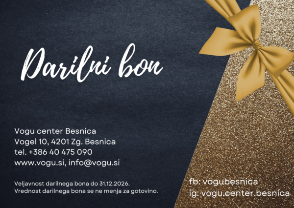 Pogoji poslovanja S klikom na gumb "Oddaj naročilo" soglašam, da Vogu d.o.o. posredovane osebne podatke (ime, priimek, telefon ter elektronski naslov) zbira in obdeluje z namenom obdelave naročila oz. povpraševanja. Izjava o strinjanju s splošnimi pogoji strani ter pravicami iz splošne uredbe o varstvu osebnih podatkov. Več o varstvu osebnih podatkov si preberite na povezavi: https://www.vogu.si/obvestilo-o-zasebnosti/ Pogoji naročila in uporabe darilnega bona se nahajajo na povezavi: https://vogu.si/obvestilo-o-zasebnosti/#darilniBoni
